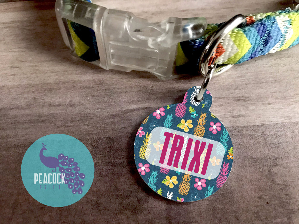 Pineapple. Bone Shaped Aluminum Pet Tag, double-sided, with hook.