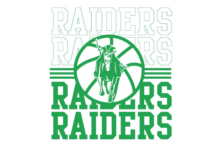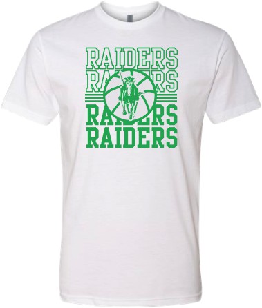SMS Girls Basketball Raiders Stacked White tee - Adult-S is backordered and will ship as soon as it is back in stock.